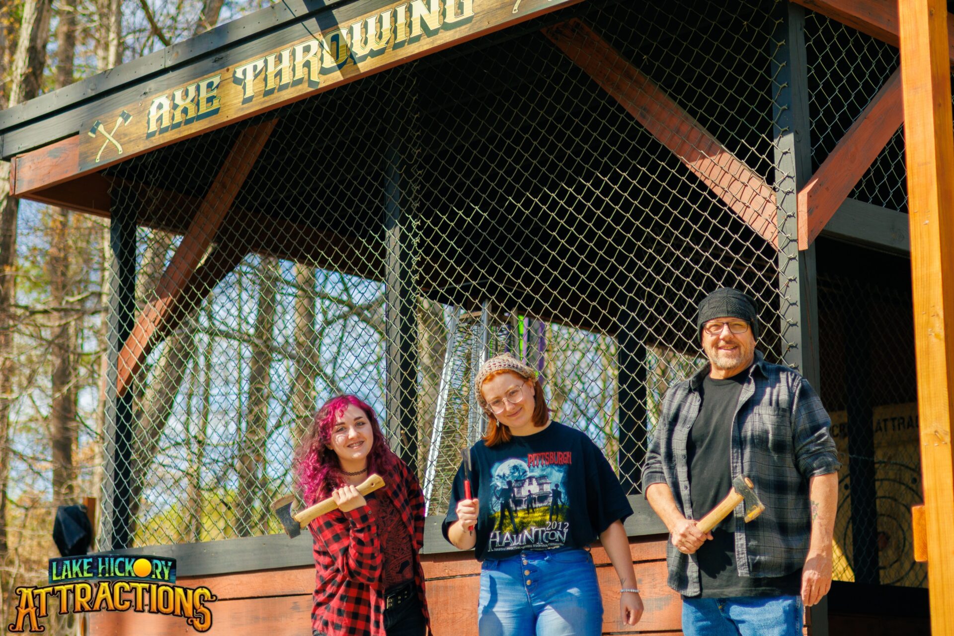 Immerse yourself in nature at Lake Hickory Attractions Axe Throwing, located on the midway of Lake Hickory Attractions! Enjoy this uniquely classic experience with friends, co-workers, family members, and more! $20 per person for 30 minutes of axe-throwing action!